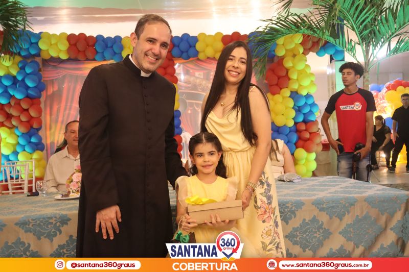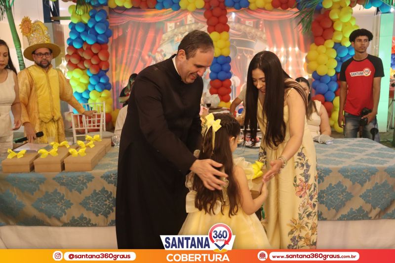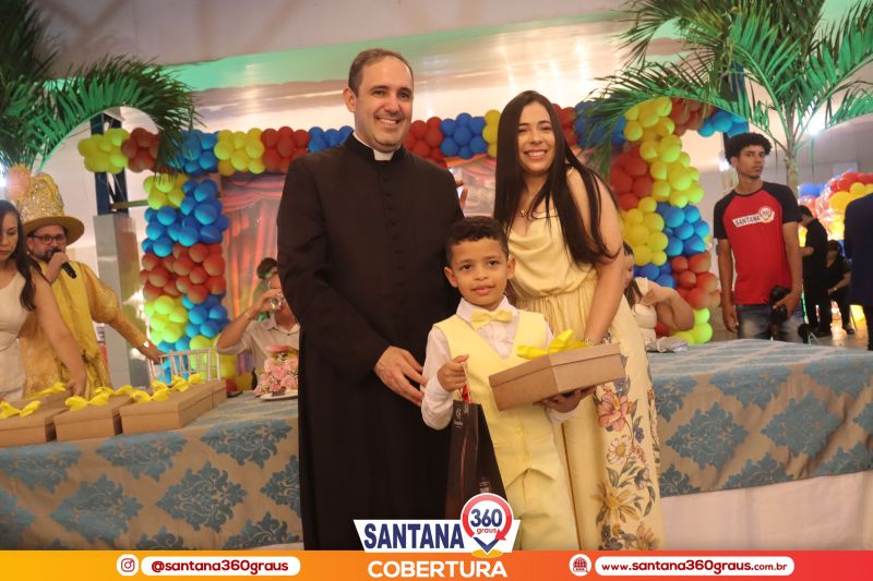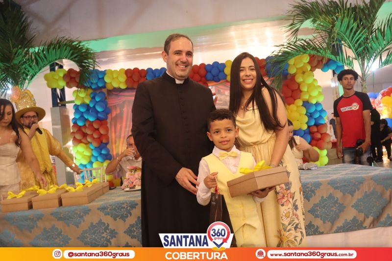 A cerimônia contou com a presença dos padrinhos da turma, Pe. Jacyel e Thamirys Anjo, da Psicóloga Priscila Soares, e dos proprietários da escola, Clóvis e Fábia Alécio, que juntos compuseram a mesa de honra e conduziram o evento com leveza e elegância. Um dos momentos mais marcantes da noite foi a tradicional dança da valsa, que ganhou um toque ainda mais encantador com o cenário circense da Disney, protagonizada pelos pequenos formandos ao lado de seus pais e familiares, emocionando a plateia.