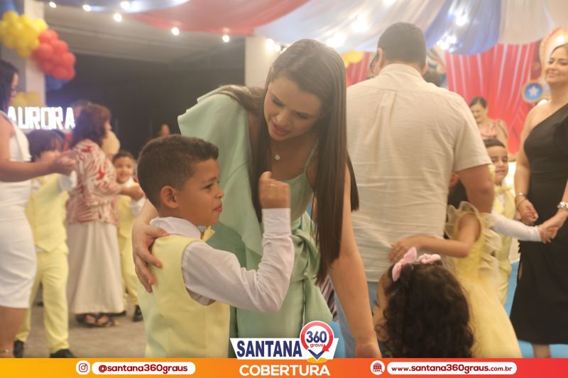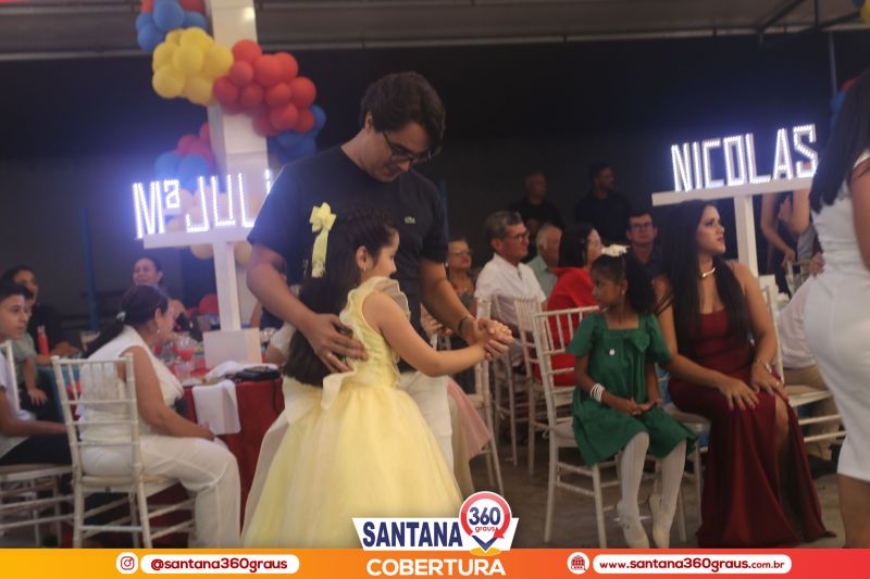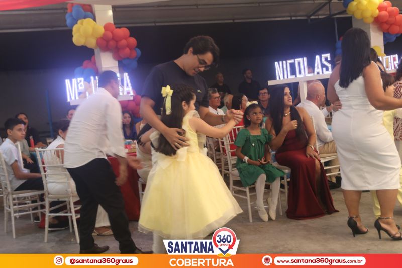 A cerimônia contou com a presença dos padrinhos da turma, Pe. Jacyel e Thamirys Anjo, da Psicóloga Priscila Soares, e dos proprietários da escola, Clóvis e Fábia Alécio, que juntos compuseram a mesa de honra e conduziram o evento com leveza e elegância. Um dos momentos mais marcantes da noite foi a tradicional dança da valsa, que ganhou um toque ainda mais encantador com o cenário circense da Disney, protagonizada pelos pequenos formandos ao lado de seus pais e familiares, emocionando a plateia.